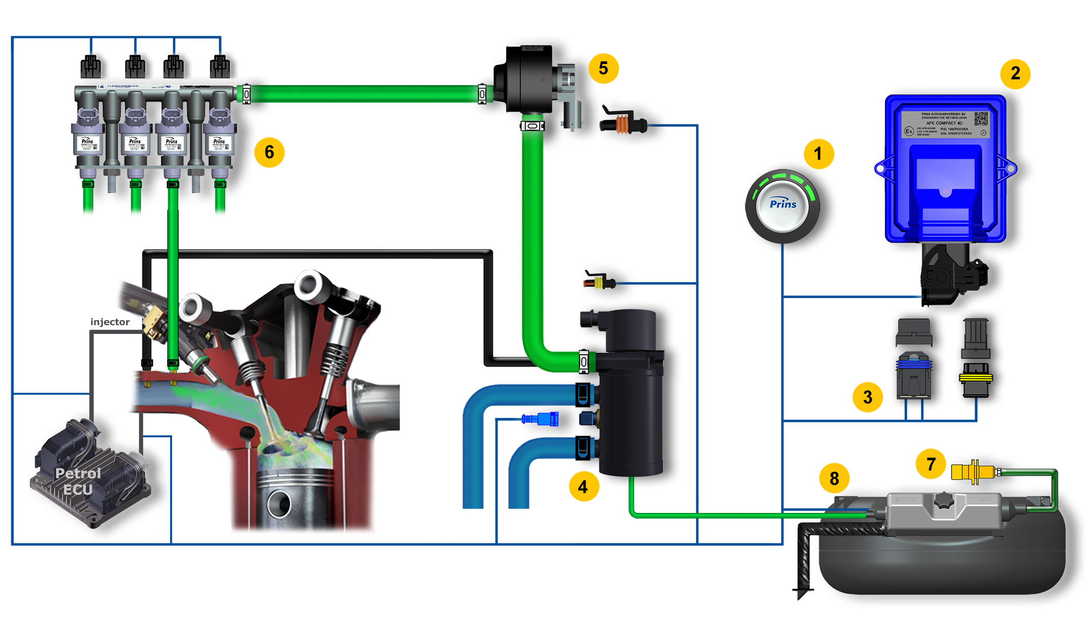 The main difference relative to the VSI system is that special Prins injectors have been developed for the SilverLine system.