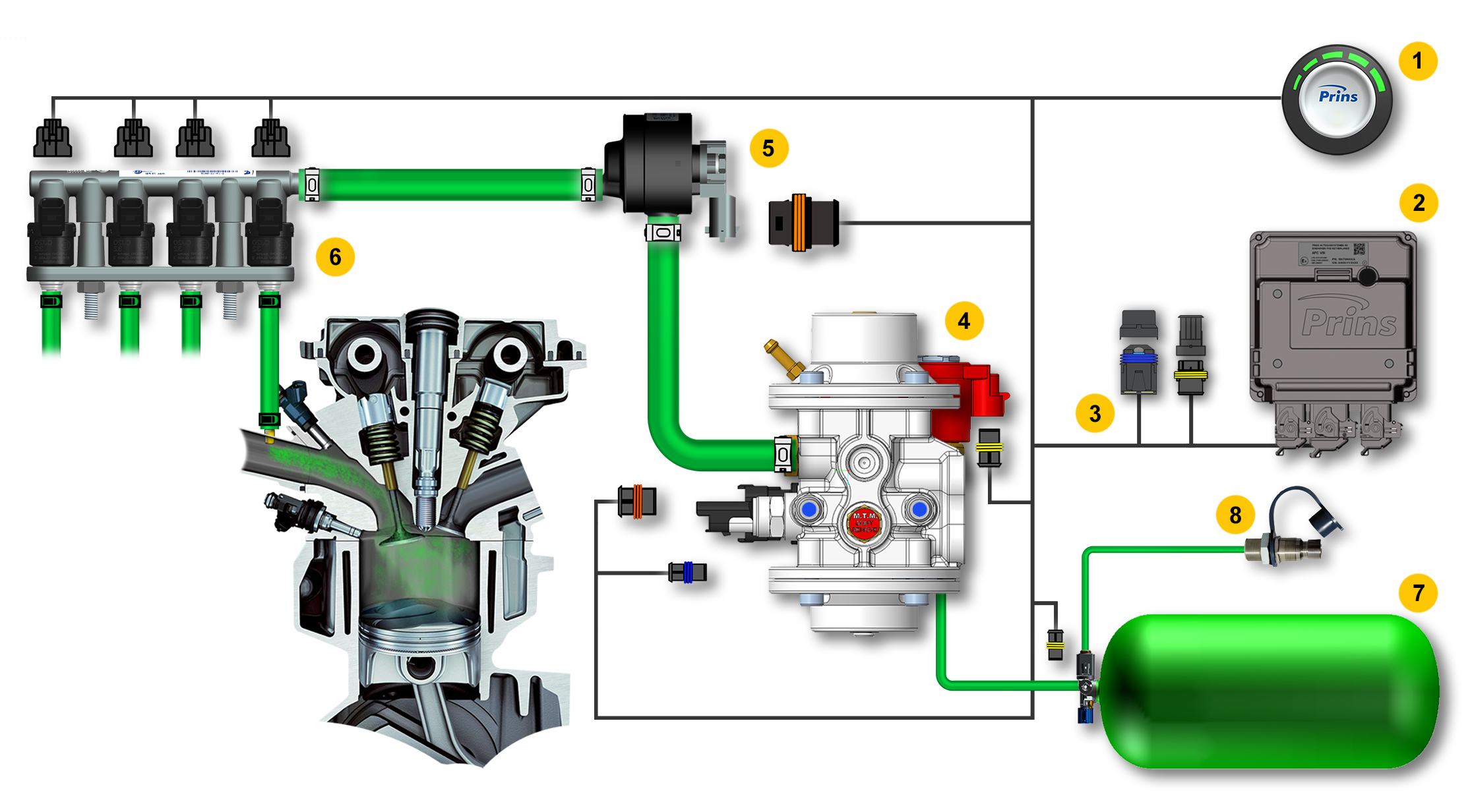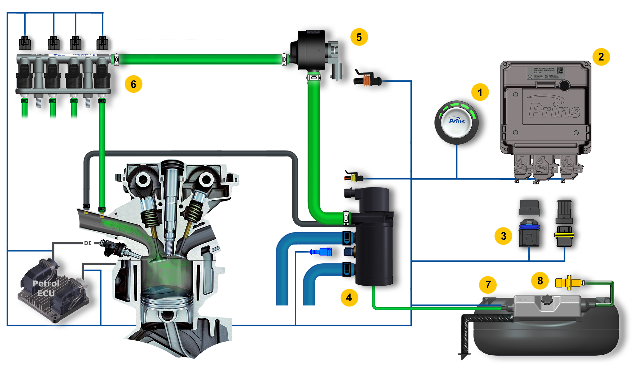 The components that make up our VSI-DI system are shown below. The main components meet the same standards as OEM-parts, and have been specifically developed for LPG systems. They satisfy the most demanding regulations and certification standards.